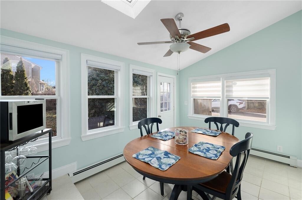 Fully furnished rental available in the Long Meadow / Tidewater section of Warwick. This charming Nantucket-style Colonial features a completely renovated interior with hardwood floors throughout and a bright,functional layout. A welcoming front porch leads into a distinctive circular entryway accented by stained-glass,adding character and warmth upon arrival. The home offers three bedrooms and two full bathrooms,along with an updated eat-in kitchen equipped with stainless steel appliances,granite countertops,and a skylight that fills the space with natural light. The comfortable living room provides a cozy place to unwind,while the dining area overlooks a fully fenced yard,ideal for enjoying outdoor space in a private setting. Additional features include attic storage,a private driveway,and a location just a short stroll to the water. This home blends classic coastal charm with modern updates in a well-established Warwick neighborhood. Tenant responsible for gas and electric. No pets and no smoking. Lease term negotiable. MLS ID 1402839