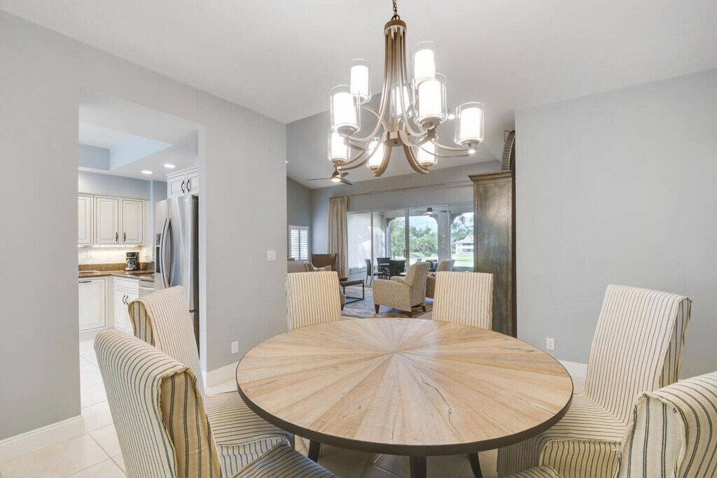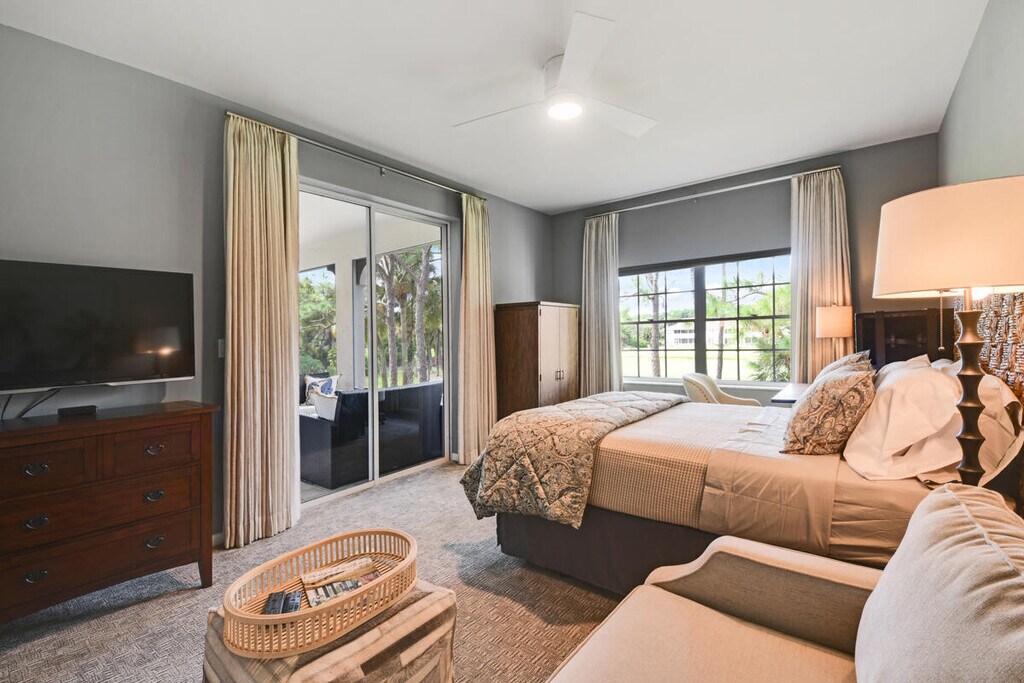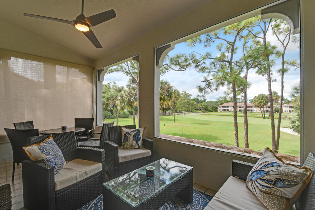 Beautifully updated and furnished 3 bedroom/ 2 bath/ 1 car garage unit on the 7th hole of the Championship Golf course. Available for rent for the season Jan-April for $8500.00/ month and off season for $4200/ month. The second story unit has amazing golf views from the living room and balcony. Enjoy the spacious living areas, updated kitchen, and 3 bedrooms. Laundry room in unit along with a 1 car garage. Enjoy all that PGA has to offer while living in this gorgeous unit across from the community pool.