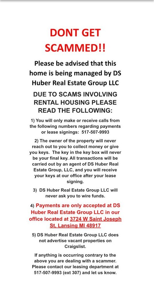 Welcome to a 4-bedroom, 2-bathroom home located in Lansing, MI. This house features a fenced yard, perfect for outdoor activities, and a front porch where you can relax and enjoy the fresh air. Inside, you will find hardwood floors and cabinetry, high ceilings, and large windows that let in plenty of natural light. The kitchen is equipped with upgraded appliances, and bathrooms have a bath and standing shower. The large basement provides extra storage space, and the electric washer and dryer are included for your convenience. Additionally, this home comes with an electric two-car garage, providing secure parking for your vehicles. Don't miss out on the opportunity to make this house your new home! Tenant pays ALL utilities. Property does NOT ACCEPT Section 8. Pets are welcome, but will incur other charges. Schedule your showing today at where you may read about our criteria and requirements, online application process, company and team! The new Resident Benefits package includes a variety of perks and services and discounts that are designed to make your life easier and more enjoyable. Some of the benefits of this package include: 1. Late Fee Waiver- One free late fee per year 2. NSF Fee Waiver–One free NSF Fee per year 3.Pinata- Earn points with on-time rent payments which can be used to purchase gift cards and to win prizes! 4. Move-in Promise: If you submit a maintenance request online via the Appfolio portal in your first week and haven't had your approved issues fixed within your first 2 weeks of the work order being submitted then dinner is on us. This benefit allows you to claim up to a $50 Doordash card. You must be part of your property manager's resident benefits and currently be in good payment standing with your monthly benefit charges. AND MORE! This benefits package comes at a cost of $15 beginning Feb 2024 a month and is an optional program. You will be automatically enrolled but have the option to opt out at any time As part of our commitment to providing a safe and secure living environment, we require all tenants to obtain renters insurance with the following coverage: $300,000 in Liability coverage $3,000 in Medical Payments to Others Personal property- full replacement amount Property Owner must be listed on the policy as additional interest in the following manner (Property Owner) c/o DS Huber Real Estate Group LLC, 3724 W St Joseph St, Lansing, MI 48917, info@. Please note that proof of renters insurance must be provided prior to move-in and throughout the lease term. We understand that accidents can happen, and we want to ensure that all parties involved are protected. PLEASE NOTE: We only accept payment through our online portal at or by money order in person at our office at 3724 W. St. Joseph St. Lansing. Property owners NEVER accept payments on our behalf. If you are asked for payment any other way, please report this scam to our office at Bath & Standing Shower Electric Two Car Garage Electric Washer & Dryer Included Front Porch Hardwood Cabinetry Large Basement Large Windows None Upgraded Appliances