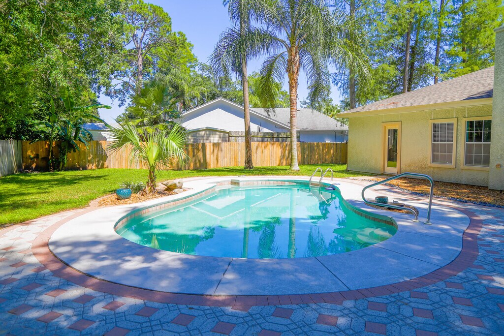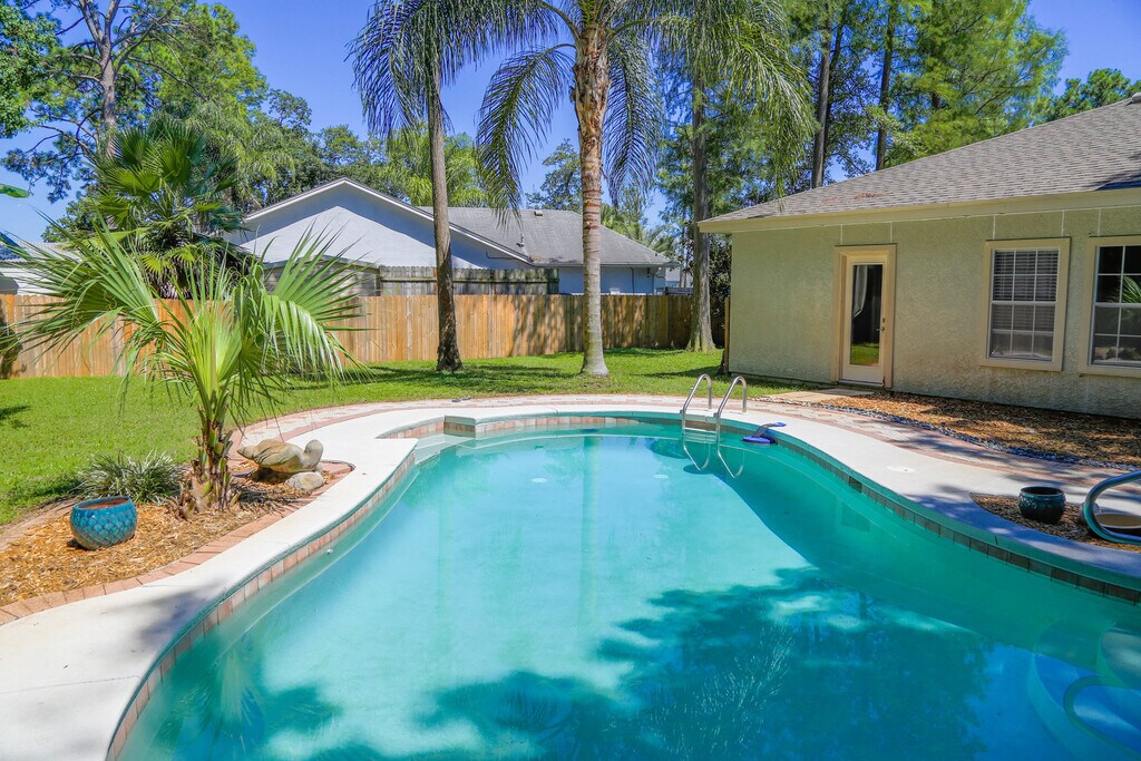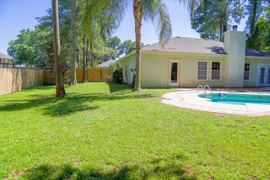 Welcome to this fabulous home in a great location with access to everything on Panama City Beach, FL! This stunning 3Bed/2Ba home is a perfect blend of comfort and convenience. The home features a spacious kitchen with a breakfast bar, perfect for those morning meals. The living area is accentuated by a wood-burning fireplace and vaulted ceilings, adding a touch of elegance to the space. The home also includes a laundry nook, a 2-car garage, and ceiling fans in every room for your comfort! Step outside to a large back patio, perfect for entertaining or simply enjoying the Florida weather. The front entry is covered, providing a welcoming entrance to the home. The highlight of this property is the in-ground pool, your perfect, private oasis for cooling off on those hot summer days! The home is located in an established neighborhood with no-thru traffic, ensuring a peaceful living environment. Experience the best of Panama City Beach living in this fabulous home! -------------------------------------------------------------------------------- *1/2 OFF Security Deposit for Active-Duty Military!* *Pool Service, Quarterly Pest Control & Lawncare Included!* *ALL pets are subject to owner approval & non-refundable fees.* *GAS = Appliances*
