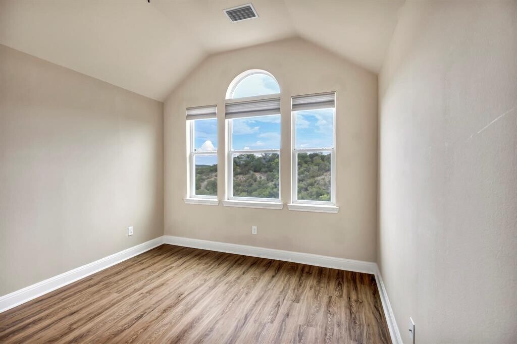 Updated condo with amazing Hill Country reserve views from 3 levels! New wooden flooring throughout, no carpets. 4 bedrooms, 3.5 bathrooms. Master Bedroom located on the main level. Lower level is ideal for an in-law or teen with a huge living/bedroom area and private bathroom. Plenty of storage space. Refrigerator is included. Gated community features resort lifestyle with junior Olympic pool, kiddie pool, fitness room, sauna, tennis, basketball, tot lot, and more. Walk to Lake Travis High School, gas station and restaurants. LANDLORD PAYS WATER, SEWAGE, TRASH AND LANDSCAPING (approx. $250 savings x mo.) MLS ID 2283972
