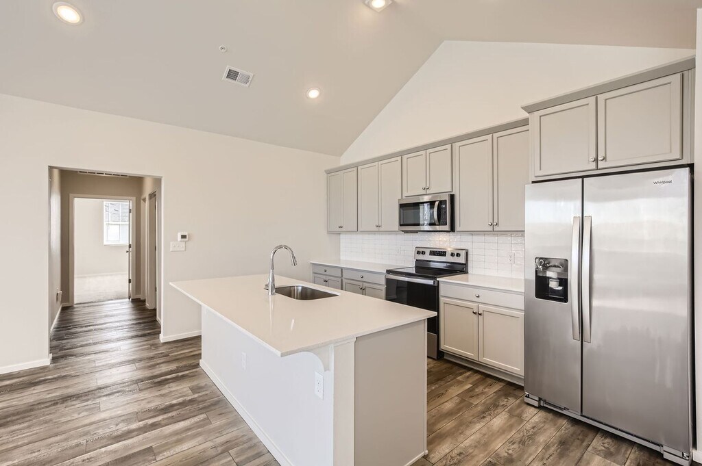 Live the Raindance life- elegant living with a park view! This stunning 2-bedroom, 2-bathroom gem stretches across 1,395 square feet, blending modern elegance with thoughtful design in every corner. From the moment you walk in, you'll feel the warmth and openness of this home. The heart of it all is the kitchen-a true showstopper with its soaring vaulted ceilings, sleek stainless-steel appliances, chic white subway tile, and gorgeous stone countertops. Step into the living room, where natural light pours through large windows, creating a bright and cozy space that effortlessly flows out to the covered patio. Imagine sipping your morning coffee here, or winding down in the evening all while enjoying the serene park views. The primary suite is all about relaxation-a peaceful retreat with a spa-like bathroom featuring dual sinks and a glass-door shower. With a convenient laundry room, a two-car garage, and unbeatable access to Raindance's amazing amenities-including 15 miles of community trails, orchards, farms, and much more! *No college students