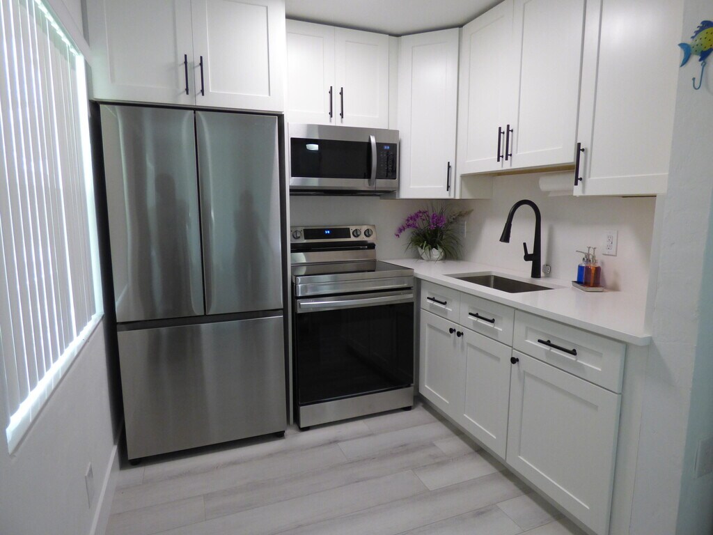 JUST STEPS TO BEACH (100yards)!! Renovated Studio/Efficiency Ground / 1st floor unit condo in 1 story bldg on Deerfield Island with white 42'' shaker wood cabinets, quartz countertop, SS appliances, heated pool, picnic area with grill. Sea Esta is a quaint 20 unit condominium with 2 bldgs. Unit is located in the 1 story bldg consisting of only 10 units. Lush Tropical Landscaping, Assigned parking. Landlord is open to Seasonal or Annual furnished Rental. Condo is only 1 block from the beach, fishing pier, restaurants, and shops. Convenient access to I95/airports/tri rail/bus stop. Free shuttle service for Island Residents. Available furnished or Turnkey. All deposits are negotiable. Condo approval NOT required