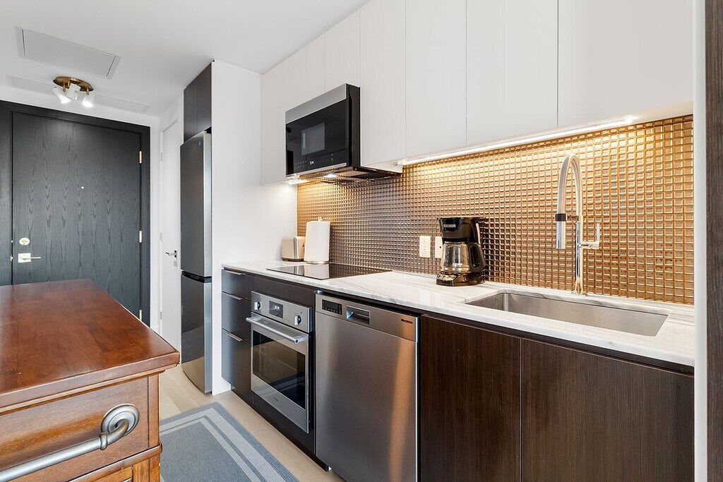 Perched on the 16th floor in the heart of downtown Montreal, this charming apartment offers the perfect blend of style and comfort. Bright and thoughtfully designed, it features a cozy living space, a modern kitchen, a spacious bedroom with walk-in closet, and comes fully furnished for effortless living. Just steps from Peel & McGill metros, shops, cafés, universities, and cultural hotspots, city living has never felt so easy!