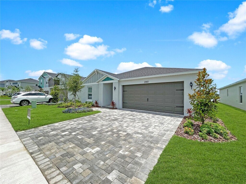 PRICE REDUCED! Welcome to this beautiful brand new 3 bedroom, 2 bathroom lakefront home in the new Two Rivers community in Zephyrhills. This one-story residence features a modern open floor plan with high vaulted ceilings, luxury vinyl plank flooring, and a stunning kitchen with quartz countertops, stainless steel appliances, and 42 shaker cabinets. The spacious primary suite overlooks the lake and includes a walk-in closet and a double-sink vanity. Enjoy peaceful water views from your covered lanai and backyard. Includes a full-size laundry room with full size washer & dryer. Located minutes from shopping, dining, parks, trails, and top-rated schools. Don’t miss the chance to live in a growing community that will offer beautiful amenities and tons of natural surroundings!