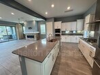 Desert retreat in the highly sought-after 55+ community of Victory at Verrado. Nestled among scenic, tree-lined streets, this luxurious home features 2 spacious bedrooms, 2.5 bathrooms, plus a versatile DEN that can easily serve as a third bedroom. A charming side courtyard adds a private touch, perfect for morning coffee or quiet evenings. The bright, open living space is anchored by a stunning fireplace, creating a warm and inviting atmosphere. At the heart of the home, the open-concept kitchen, dining area, and great room extend outdoors through an impressive 16-foot multi-panel sliding glass door. This feature seamlessly frames sweeping views of the Victory Golf Course and the breathtaking White Tank Mountains.