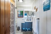 Experience the charm of waterfront living in this delightful two-bedroom house nestled between Cama Beach and Camano Island State Park. With breathtaking views of the Olympic Mountains and just a minute's walk to the sandy beach, you'll feel at home in this serene setting. The house features two levels, with the main floor offering a kitchen, living room, dining area, and two bedrooms. A set of stairs, approximately 30 steps, leads down to the front entrance, welcoming you to this tranquil retreat. This inviting home boasts a generous deck perfect for stargazing and relaxation. The kitchen is fully stocked with a range of appliances, cookware, silverware, servingware, spices, coffee, and tea, ensuring you have everything you need for a comfortable stay. The main floor includes a queen bed and a twin-size bunk bed, while the lower level offers an open space with a queen bed and a pull-out couch. Enjoy the convenience of an onsite washer and dryer for all your laundry needs. Guests can enjoy great amenities, including a hot tub, kayaks, paddleboards, and a BBQ. Well-trained pets are welcome with a fee of $50 per pet per night. Additional guest fees apply for more than four guests, with a maximum of eight guests allowed. Dynamic pricing is utilized, so booking rates may vary. Camano Island is renowned for its scenic beauty and tranquil atmosphere, accessible by a bridge from the mainland. The island offers lush forests, vibrant wildlife, and miles of picturesque coastline, making it a haven for outdoor enthusiasts. Enjoy hiking, kayaking, fishing, and bird watching, or explore the vibrant arts community with local galleries and studios. The house is conveniently located between Camano Island State Park and Cama Beach State Park, making it an ideal home base for your getaway. The property enforces quiet hours between 10 pm and 8 am and prohibits parties, events, smoking, and vaping anywhere on the premises. A $500 fine applies for violations. Pets are welcome but should not be allowed on furniture or linens, and guests are responsible for cleaning up after them. The house is accessed via a set of stairs from the main road, and a car is recommended for getting around the island. [SI]