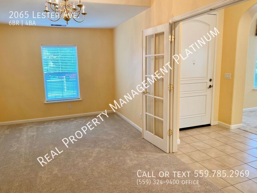 CLICK HERE to schedule a showing: 6 bedroom | 3.5 bathroom | 3,279 sq. ft. | Built in 2003 Two bedrooms, full bath and 1/2 bath are downstairs. Upstairs, Main Bedroom has a large walk in closet. Main bath has dual vanities, separate soaking tub & shower. Three additional bedrooms and full bath. Top of the stairs has a built in desk area and linen closet. Front living room, formal dining area, french doors lead to the office. Kitchen has a center island, butler's pantry, dinette area and opens to the family room. Appliances include refrigerator, electric range, dishwasher, wall oven and microwave. Sliding glass doors to the backyard, enjoy the covered patio, fenced pool and lawn area. Laundry room has cabinets, sink and electric hook ups, next to the attached 3 car garage. Yard & Pool care provided. Credit score above 650 REQUIRED. Clovis schools. Non smoking. No pets. Renter's insurance is required. Call to schedule a showing or to contact the office. DRE# 01901101. All information is deemed reliable but not guaranteed and is subject to change. Dre# 01901101 Non Smoking Renter's Insurance Required