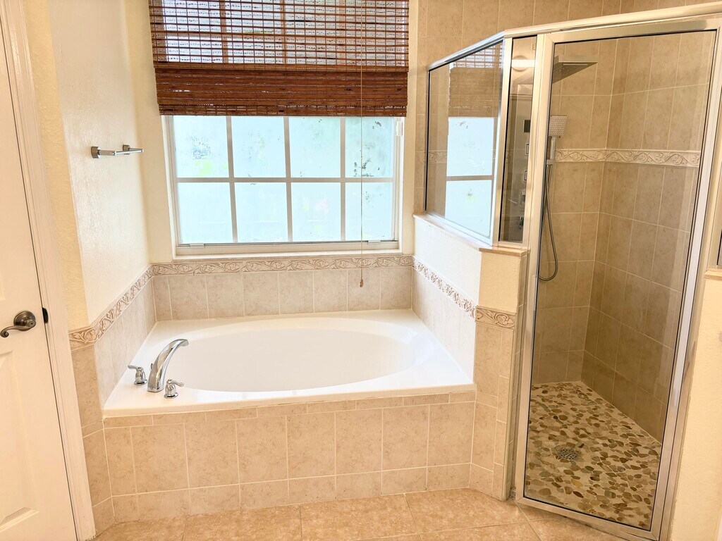 This stunning and spacious 4-bedroom, 3-bath, 2-car garage pool home offers luxury living at its finest. The home features numerous upgrades throughout, including high-end appliances and beautiful quartz countertops in the kitchen and bathrooms. Elegant tile flooring flows seamlessly through the entire home. The master suite includes custom California closets and a spa-like bathroom with a separate soaking tub and walk-in shower. Perfect for entertaining, the home boasts a cabana bath leading directly to the sparkling pool and a large covered patio ideal for outdoor gatherings. The oversized, fenced-in yard provides plenty of privacy and includes a shed for extra storage. A circular driveway adds convenience and curb appeal, making access to and from the and from the home effortless.