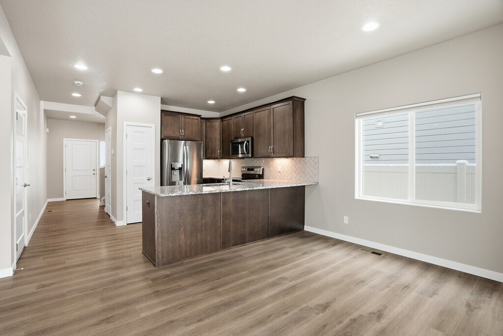 Located in the desirable Montrose Subdivision of Post Falls, this immaculately maintained home offers modern comfort, thoughtful design, and an exceptional neighborhood setting. The open-concept living area is warm and inviting, featuring a gas fireplace with built-in's on either side, creating a perfect focal point for everyday living or entertaining. The spacious kitchen, with a brand new fridge, flows seamlessly into the dining room. The Kitchen is well-appointed with granite countertops, a full herringbone-style backsplash extending from countertop to cabinetry, and a stainless steel refrigerator. The primary suite includes a beautifully finished bathroom with granite countertops, while the upper-level laundry adds convenience with a washer and dryer included. Upgraded luxury vinyl plank flooring enhances the main level, providing both durability and style. Step outside to a generously sized covered rear porch that is ideal for outdoor entertaining or relaxing year-round. The fully fenced backyard is thoughtfully landscaped and includes a storage building for added functionality. Residents of Montrose enjoy a park-like environment with mature trees, miles of scenic trails, and acres of community parks, including a nearby splash pad park just moments from the home. Professionally managed by Red Rock Property Management Applications can be found at: www.redrockrentcom BEFORE YOU APPLY - Please consider the following before filling out and paying for the application. 1. Applicant(s) must be a minimum of 18 years of age. 2. Each applicant will be required to apply individually, to include married couples. 3. Gross monthly household income must be equal two and half times the stated monthly rent. 4. Checking that your income(s) are sufficient and verifiable to cover two and half times the rent for the property. 5. Check for any past evictions or collections while running your credit. 6. Calling any references that you will be using. This includes professional, personal, and rental references. 7. Open bankruptcies will affect your eligibility. 8. Red Rock Property Management does not accept comprehensive reusable tenant screening report. Rental Terms : 12 - months Application Fee : $55.00 per applicant Security Deposit: $3695.00 Administrative Fee: $300.00 Rent: $3495.00 Utility Fee: Tenant pays Water, Sewer via tenant portal. Avista and Waste Management are in tenants name directly. Pet Policy No Pets