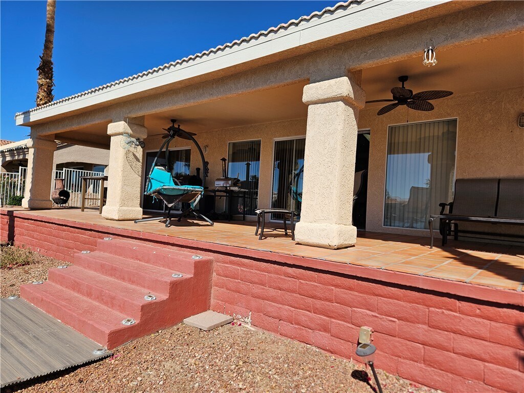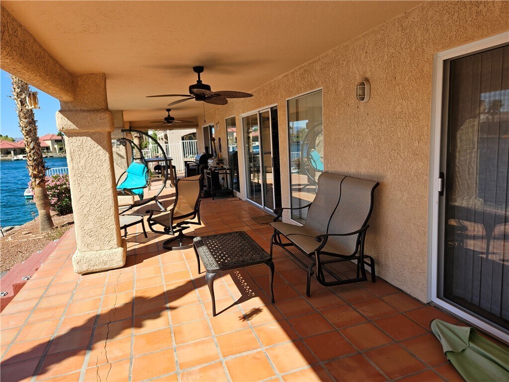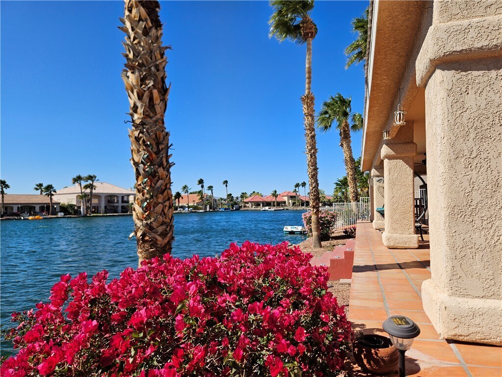 Executive Home for rent in Los Lagos located on a cul-de-sac and on the water. Los Lagos is a gated Fort Mohave community with clubhouse,pool,spa,tennis and pickleball courts. Fully furnished and beautifully equipped 3-bedroom,2 bath house with large kitchen,breakfast bar and pantry; Adjoining living room with wall-to-wall windows looking out to a spacious covered patio,complete with furniture,hammock,barbecue,cooker and views that will inspire you on a daily basis. You'll appreciate the large master bedroom with walk-in closet,walk-in shower,garden tub and dual-sink vanity. Paddle boat and kayak water toys included with your private dock. Welcome Home to Los Lagos.