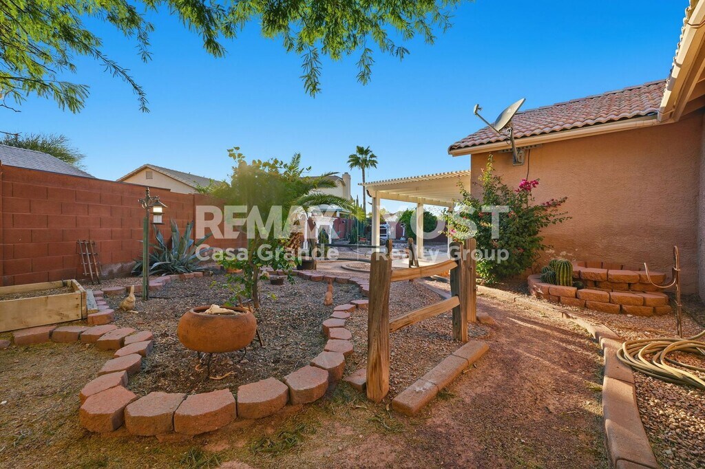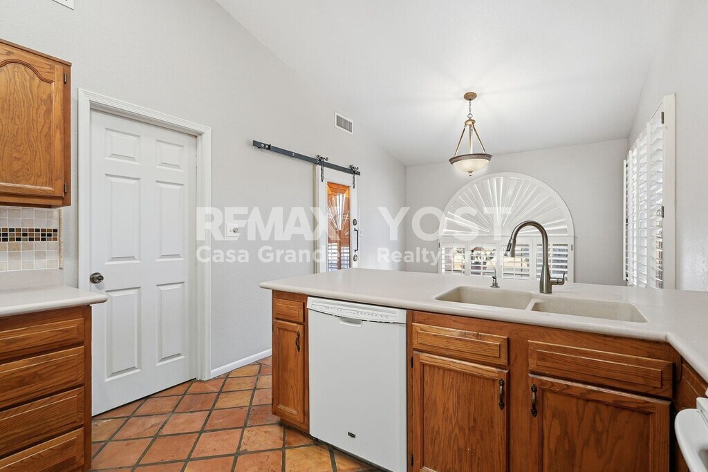 Step into a home bursting with Southwest character—vaulted ceilings, bold archways, and stunning Saltillo tile that makes every room feel special. Enjoy two spacious living areas, perfect for relaxing or entertaining, plus a kitchen full of charm with custom tilework and a stylish barn-style pantry door. The primary suite delivers true retreat vibes with plush carpet and a dramatic, spa-like bathroom featuring a huge tiled walk-in shower. Outside, unwind in a desert-friendly backyard with a covered patio, mature landscaping, and a built-in fire pit made for Arizona evenings. Packed with style, space, and personality—this Casa Grande Lakes rental is a rare find!