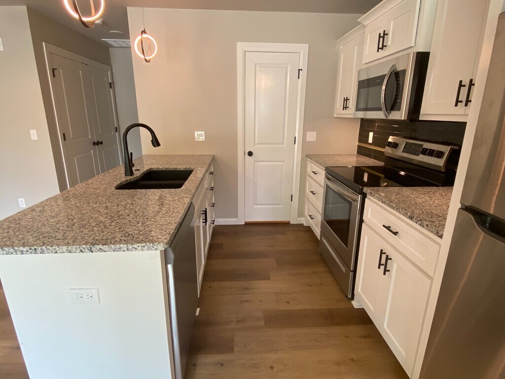 2022 constructed quadplex in the Redbud District of Owasso! Modern construction with open floor plan concept. This unit is a 1 bedroom, 1 bath with kitchen, dining, living, and laundry room. Granite countertops, stainless appliances. Refrigerator included! Hard surface flooring. Pet Restrictions! Walking distance to restaurants, shopping, brewery, library, community center, Redbud Festival, Park and Outdoor Theater. One designated parking space. RENT PLUS $70/mo for Water/Trash/Sewer. Tenant pays own Electric. Only one smallish pet please. No fenced yard.