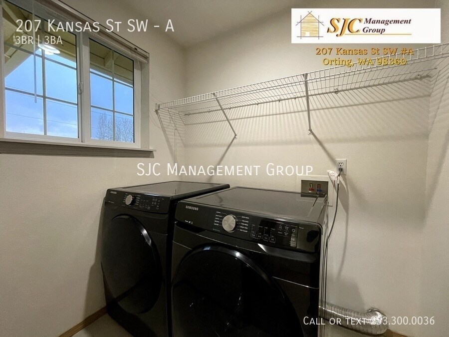 Lovingly maintained 3 bedroom 2.5 bath townhouse-style duplex in the heart of Downtown Orting. Just minutes away from parks, shopping and great restaurants. The kitchen adjoins the nicely-sized family room space so the cook can be included in any of the other activities. Large, walk-in pantry and abundant cabinetry provides for all of your kitchen storage needs. A half bath/powder room is conveniently located near the entry. Upstairs are the 3 bedrooms, a full bathroom, multiple storage closets, and a laundry room with provided washer and dryer. The primary bedroom has another bathroom and large walk-in closet. A single car garage with electric opener is provided for your convenience. The cozy back yard is fully fenced. As an added bonus, the lawn maintenance as well as a quarterly pest control contract are included and paid for by the owner. For more information or to set up a viewing please contact the leasing team at SJC Management Group today! Pets [breed and size restrictions may apply] are allowed, pet screening required. Approved pets will incur a pet mitigation fee (between $150 and $350) at move-in + a monthly pet fee of $35-$75, max two pets. Please note showings can be scheduled online at any time. After hours or weekends, showings must be scheduled and confirmed by our staff before the end of the business day. Our business hours are Monday-Friday from 9 am to 5 pm. We are closed for all major holidays. ADDITIONAL TERMS: Required $85 at move in and additional $35 per month Resident Benefit Package offers an array of advantages. With this package, you'll enjoy convenient benefits such as regular delivery of furnace filters and additional perks designed to enhance your renting experience. UTILITIES: Not Included DEPOSIT REQUIRED: $2400