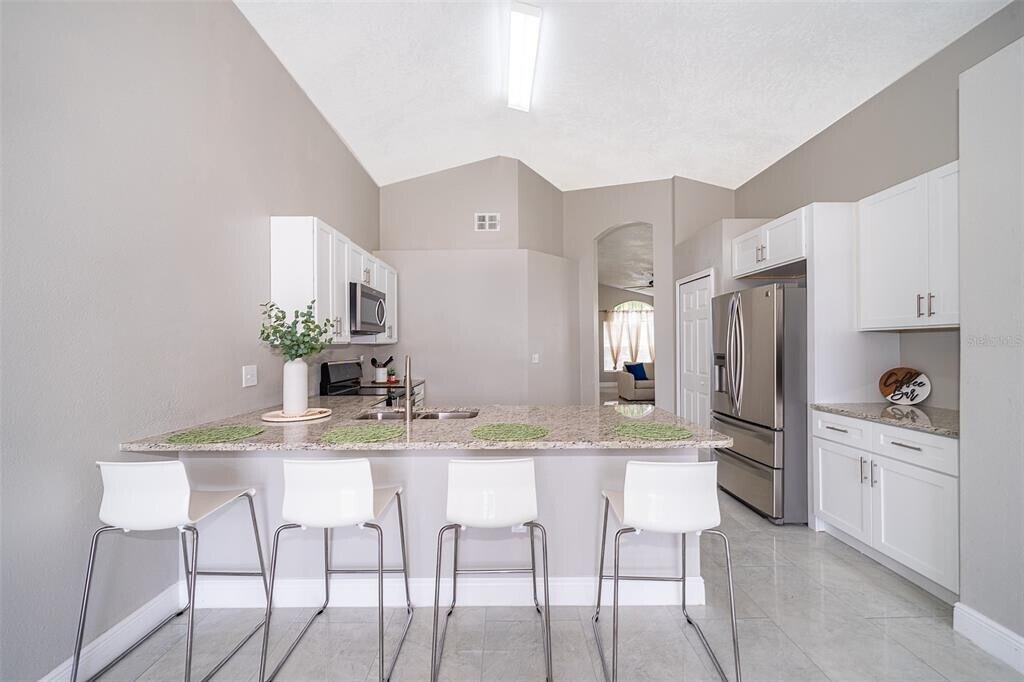 COMPLETELY RENNOVATED!! Beautiful and spacious,upgraded home! Boasting 4-Bedrooms,3-Bathrooms,with a screened in private pool and all stainless-steel appliances. Painted (2023),brand new ceramic tile flooring throughout (2023),Water Heater (2023),AC Condenser (2022),Newer Evaporator,New kitchen cabinetry (2023),New Bathroom Cabinets and vanities (2023),Newer roof (2017). Master suite has a beautiful view of the pool and NO REAR NEIGHBORS,plus a huge walk-in closet,bathtub,and shower. Beautifully maintained community offering a gym/fitness center,swimming pool,and a clubhouse,close to major attractions,highways,shopping centers,restaurants,and golf clubs. MLS# O6394672