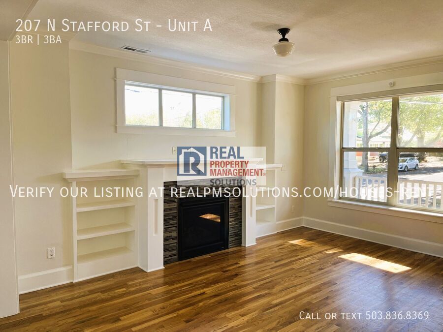 Welcome to your next home in North Portland’s desirable Piedmont neighborhood! This beautifully maintained upper unit Craftsman Four Square boasts 3 Bedrooms/2.5 Baths and two floors of stylish living with high ceilings, hard wood floors, gas fireplace w/ built-ins, a nice kitchen with pantry and solid surface countertops. Nice sized deck off the dining room and a spacious front porch. Upper unit has nearly new HVAC with AC! Main Unit (Upper Floors): -3 bedrooms | 2.5 bathrooms -Light-filled open concept with high ceilings and hardwood floors -Combined living, dining & kitchen area for seamless entertaining -Elegant gas fireplace with built-ins -Solid surface countertops, pantry, and spacious kitchen layout -Private balcony off the dining area + large covered front porch -Primary suite with walk-in closet and en-suite bath -Newer HVAC system with central A/C Additional Features: -1-car carport for convenient off-street parking -Freshly painted exterior and interiors – move-in ready condition -Washer/dryer -Ample storage throughout -Energy-efficient windows and gas appliances Ideal Portland Location: -Enjoy easy access to everything North Portland has to offer: -Just minutes to New Seasons Market, Fred Meyer, Farragut Park, and Peninsula Park -Close to MAX Yellow Line, I-5, and major commuting routes -Surrounded by restaurants, cafes, food cart pods, and neighborhood charm The Open Application Period begins 10/13/2025 at 5pm. At the start of the Open Application Period, the date and time that each completed application is received is recorded and applications are processed in the order received. If applications are received before the Open Application Period, they are subject to an 8-hour penalty and processed in the order received (see PCC 30.01.086.C.1). SCREENING CRITERIA: A link to the Application Criteria can be located in the upper right hand side of the listing on our Real PM Solutions website PET POLICY: The Pet Policy for this home is: No more than 2 pets and 45lbs weight limit. Pet rent applies. For more information on pets go to the FAQ link located at the top right of the listing description. ASSISTANCE ANIMALS: Requests are reviewed by submitting an Assistance Animal profile, including required documentation. For more information on pets go to the FAQ link located at the top right of the listing description. SMOKING: No Smoking Allowed in the Property For disclaimers and more information such as, but not limited to, application details, fees not included in the rent and renters liability insurance requirements, visit our Frequently Asked Questions page. A link to our FAQ can be located in the upper right side of listing description just below the Application Criteria link.