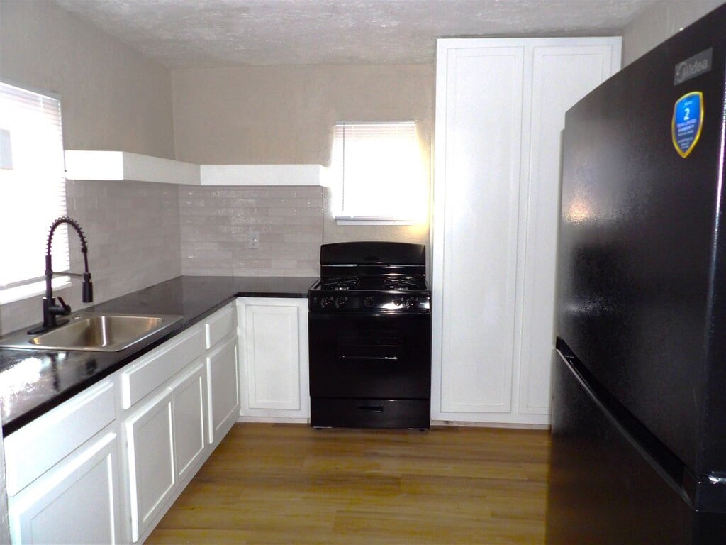 A cozy 2 bedroom, 1 bathroom unit that has been freshly remodeled. The unit features new appliances, including a refrigerator and oven, as well as washer and dryer hookups.