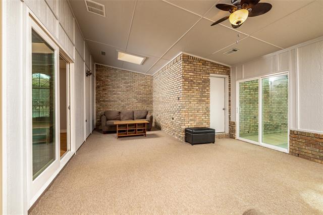 Gorgeous Trophy Club home located in Tarrant County! This one-story, 3-bedroom, 2.5-bathroom home has been updated in all the best ways, featuring beautiful light-colored luxury vinyl plank flooring in the living areas, new carpet in the secondary bedrooms, and decorative light fixtures throughout. The kitchen offers plenty of cabinet space and features an island with an extra sink, wine fridge, and refrigerator that will remain with the home. The primary bathroom is a retreat with a standalone tub, updated shower, separate vanities, and a large wrap-around closet. At the back of the home, you’ll find an open extra room perfect for a den, office, or playroom that leads into an enclosed patio sunroom, providing additional flexible living space. Lawn care, washer, and dryer are included. Don’t miss this wonderful home!
