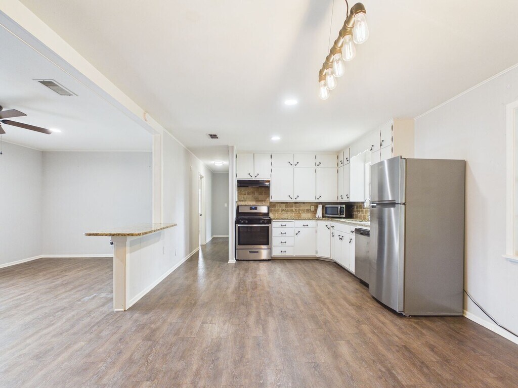 This 3-bedroom, 2-bathroom home offers both comfort and functionality. The kitchen is fully equipped with a stove, microwave, and refrigerator, along with plenty of cabinet space for storage and beautiful granite countertops that add a modern touch. All bedrooms are spacious which provides ample room for relaxation and personalization. The guest bathroom includes all amenities, while the primary bedroom features a private, attached bathroom for added convenience and privacy. For added ease, a washer and dryer are included within a dedicated storage room for extra organization. This home combines practical features and comfortable living spaces along with plenty of storage space. Virtual tour link: