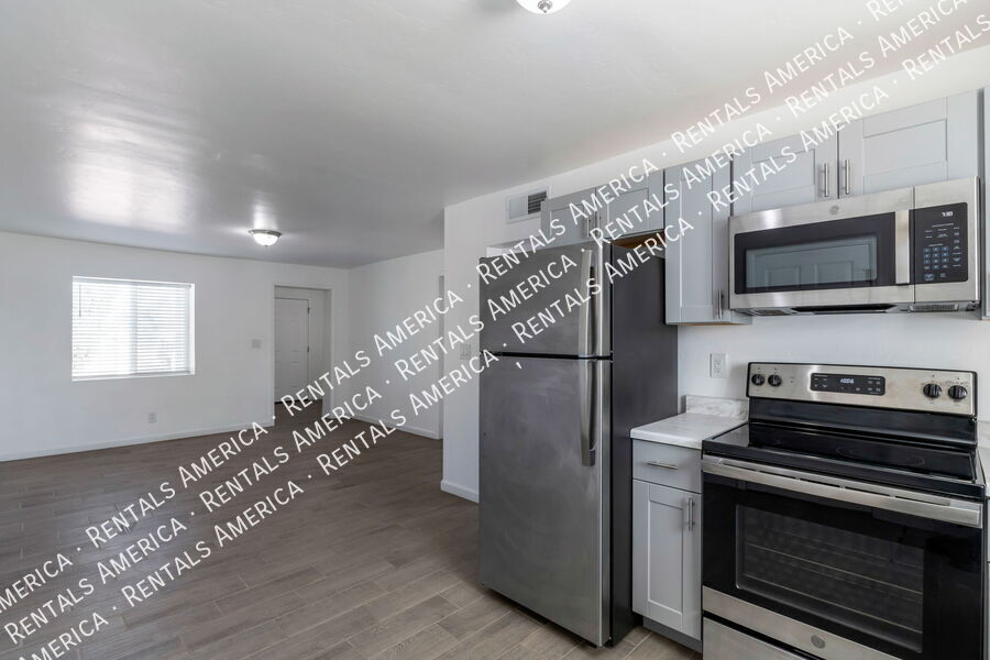 This newly renovated 3-bedroom, 2-bath home offers a stylish blend of comfort and functionality in a charming single-story layout. Thoughtfully designed living space, this home features an open concept floor plan with a spacious great room and updated tile flooring throughout. The kitchen showcases light gray cabinetry, ample counter space perfect for everyday cooking and entertaining. Natural light fills the home through large windows, while blinds throughout offer privacy and comfort. All three bedrooms are generously sized, including a primary suite with a completely renovated bathroom featuring sleek, modern finishes. Additional highlights include crisp white walls, contemporary fixtures, washer and dryer hookups, and convenient parking space. Rental price include Water, sewer and trash! One-Time Admin Fee: $300. Monthly Service Fee: 1% of monthly rent. Refundable Pet Deposit: $300/Pet, if applicable. Resident Benefits Package: $39/month. Helping Heroes Discount Available! Cats Allowed Dogs Allowed Pets Allowed