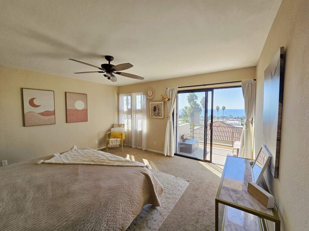 If you want an ocean view this is the place! West of the 5 and a short walk to downtown Cardiff, Cardiff State Beach, and Encinitas Community Park (includes a big off-lease dog park). Beautiful and spacious 3-story house with fireplace, walk-in master bath shower, patios in master bedroom, living room and downstairs bedroom each with their own ocean view. 2 car garage and front area parking. Located in Cardiff school district. Pets welcome with landlord approval and $50 per month pet rent. $30 application fee per applicant. CA DRE #01824191.