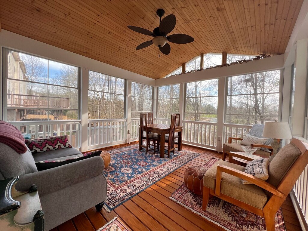 WELCOME HOME to this Meticulously maintained End Unit Townhome in sought after Lowes Island. The owners have thoughtfully included every feature and intricate detail to ensure tranquility, comfort, and pure pleasure during those days at home. This home is a chef and entertainer's dream which includes over 2700 finished square feet, 3-fully finished levels, 4-season enclosed deck, and a finished walk-out basement to landscaped backyard with privacy fencing that backs to trees. This 2-Car Garage End Unit Townhome includes entry through the garage and front main entry. The Main Level features an open floor plan with stunning hardwood flooring, expansive living room with gas fireplace. Linger to the 4-season deck with cooling and heating elements coupled with open adjoining deck for grilling. The kitchen is huge with stunning granite coutertops, bar, stainless steel appliances, induction range, built-in oven and microwave, refrigerator with ice maker and water dispenser. Delight in the morning sun in the breakfast room and huge dining area. The Upper Level includes a large Primary Suite with Walk-In closet, convenience of a stacked Washer and Dryer, and an adjoining Primary Luxury Bath with Dual Vanities and Heated Floors. Additional oversized 2 Bedrooms and Full Bath. The Lower Level is Fully Finished and Improved Walk-Out Basement includes plush carpet, warmth of an additional gas fireplace, a projector and screen for movie and sports nights, a full bath, and hookup for an additional washer and dryer, if desired.