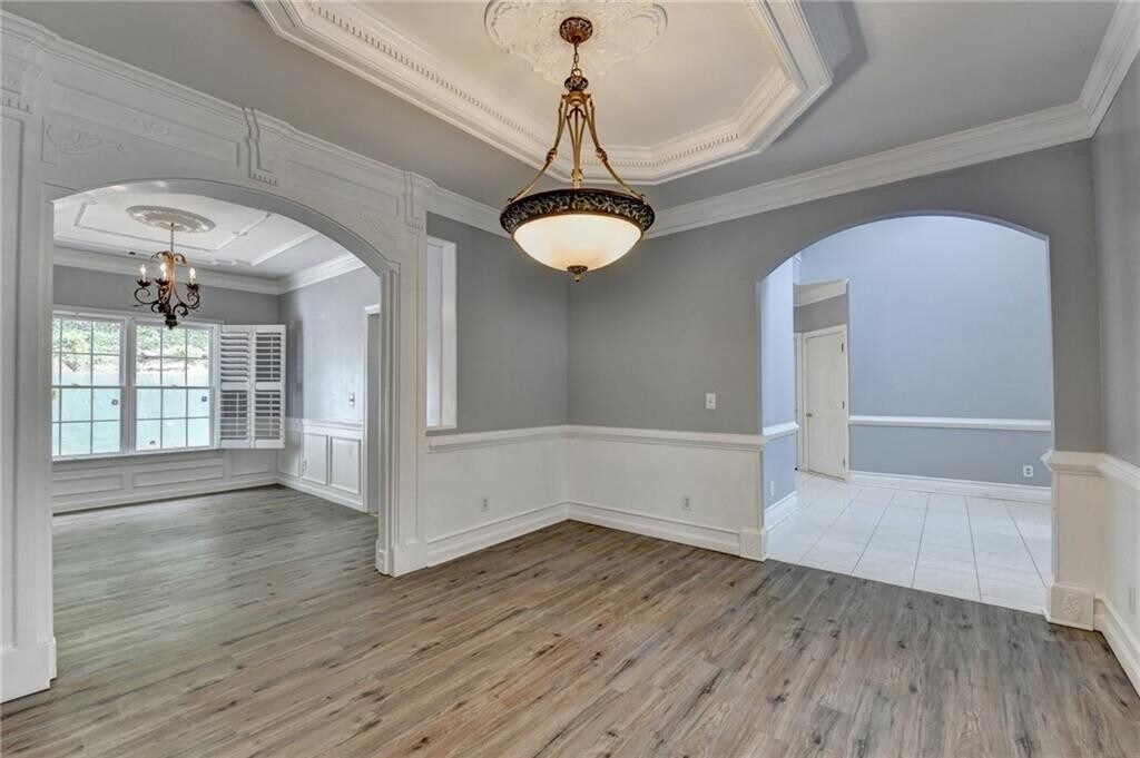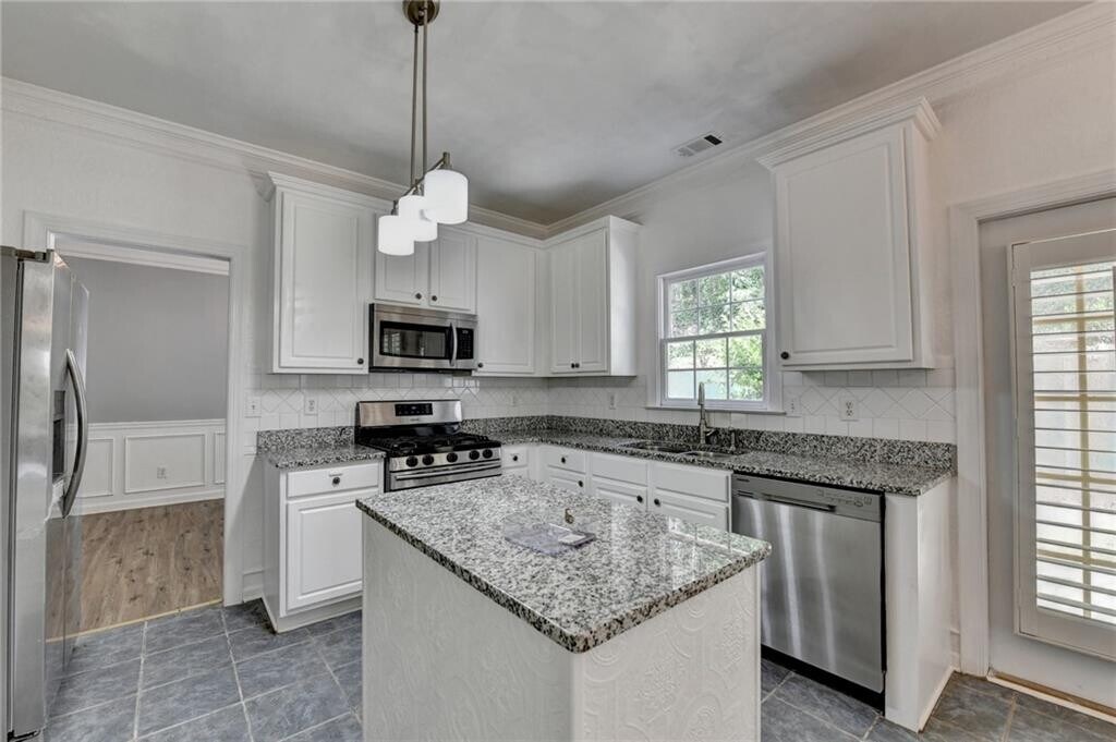 Hardwood floors throughout,sun-filled interiors,and a rare private wooded backyard—this home truly stands out!Immaculate traditional home with a stunning brick front and beautifully landscaped front yard. This richly appointed home features extensive crown molding,custom wall treatments,plantation shutters,and elegant iron handrails. The entire home boasts hardwood flooring throughout and is filled with abundant natural light. The designer white kitchen showcases stainless steel appliances,granite countertops,and a standalone island—perfect for both everyday living and entertaining. The open layout flows seamlessly into the main living areas,creating a bright and welcoming space. Step outside to a private,fenced backyard with serene wooded views,offering exceptional privacy. The charming covered porch provides the perfect setting to relax and enjoy the peaceful surroundings. Located in a quiet neighborhood with excellent schools,and just minutes from Interstate 75,shopping,and dining. and view it today! Let's call it HOME! MLS ID 7757380