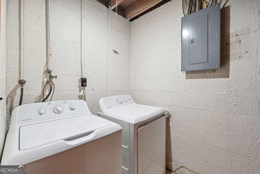 This fully renovated 2-bedroom, 1-bath home offers exceptional value in one of Atlanta's most sought-after locations. Perfectly situated between Brookhaven and Buckhead, you'll enjoy quick access to premier shopping, dining, and major interstates all while coming home to a peaceful, residential setting. Inside, the home features new LVP flooring in the kitchen, fresh paint throughout, and newly stained hardwood floors in the main living areas and bedrooms. The full kitchen includes stainless steel appliances, granite countertops, and an eat-in dining area, creating a bright and functional space for everyday living. The living room offers a warm focal point with its charming fireplace, and both bedrooms are well-sized and inviting. Outdoor highlights include ample off-street parking, two private patios, and a large, mostly fenced backyard with a beautiful creek ideal for relaxing or entertaining. A shared laundry room with the downstairs unit adds to the overall convenience. Water, trash service, and landscaping are all included, helping reduce monthly expenses and simplifying your budgeting. If you're searching for a well-appointed home in a prime Atlanta location, this one is a must-see.