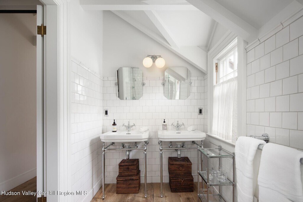 Driving into the nearly 300 acre PRIVATE ESTATE uphill through the red maple,yellow birch and hemlock forest with all the birdsong surround kindles the imagination as the approach to the historic 1800 Greek Revival eyebrow architecture house is everything you thought it would be a the end of such a private gravel driveway. The property is resoundingly expansive echoing a quietude of place and inviting you to hike its many miles of established woodland trails where there is space for daily walks,runs and sledding in privacy. As you crest the hilltop upon which the residence is situated,an acre large pond with its natural tuck in lies just down a gentle slope from the house. Brimful with a fanciful forest curtain painted by the seasons and graced with a stationary dock,an essential launch pad for the cold plunge,the pond is a dynamic feature. A former barn transformed by time into a fresh air dining space cheerfully greets you and breathtaking views make the outdoor Hay Palisade furnished viewing deck a centerpiece of Fall leaf peeping. The 3 bedroom 2.5 bathroom home has been thoughtfully renovated and furnished to enhance the historically significant building techniques through preservation while escalating it's modern living convenience for an expansive friends and family usage. The current stewards of this magnificent property have rebuilt a country kitchen overlooking the wild to include a 40 inch Lacanche Cluny range and hood alongside an accompaniment top of line appliances. The morning milieu throughout the home has a bright,sunny disposition afforded through all the eastbound sash windows and French paned glass doors. The bathrooms include original ball and claw tubs and period pedestal sinks preserving all the charm of the 19th c. period mixed with subway tiled showers added to the accompaniment of chrome towel warmers and sunflower shower heads for luxury. The main house is also appointed with two living spaces and a large indoor dining area all boasting 3 wood burning fireplaces to warm your toes after a cross country ski day that launches just off the back porch. A tidy and terrific1 bedroom 1 bathroom guest house,resonating the same integrity of the property,with its own amenities waits for a writer in need of retreat. Situated near the Duchess County and Columbia County border,the agricultural farm feels and the country drives from the City are restorative and restful as you follow the scenic Taconic Parkway north. The James Beard Award winning Stissing House has brought a level of dining experience to the surrounding neighborhood that creates quite the buzz and proximity to the beautiful Bard campus with all its cultural and community programming throughout the school year lies at the doorstep of this enchanting compound.