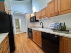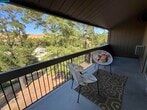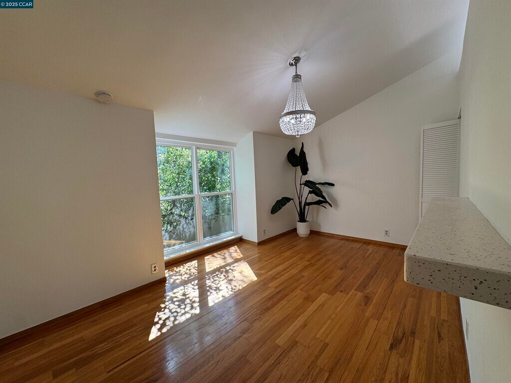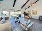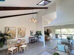 One block from shopping,resturants,theatre,Starbucks,and transportation. move in to this super sharp 3bed/2bath single story condo with vaulted ceilings. Freshly painted interior,wood flooring throughout. Kitchen and hallbath have been updated. Large primary bedroom with remodeled bath. Lots of natural light and beautiful mountain views from primary bedroom,living room,and large patio. Extra attic/storage area added above hallway with flooring and electricity. Owner pays hot/cold water & trash removal. One assigned covered space and one permit pass for guests or second car. Community pool and clubhouse. Community laundry is just a few steps away from the front door.