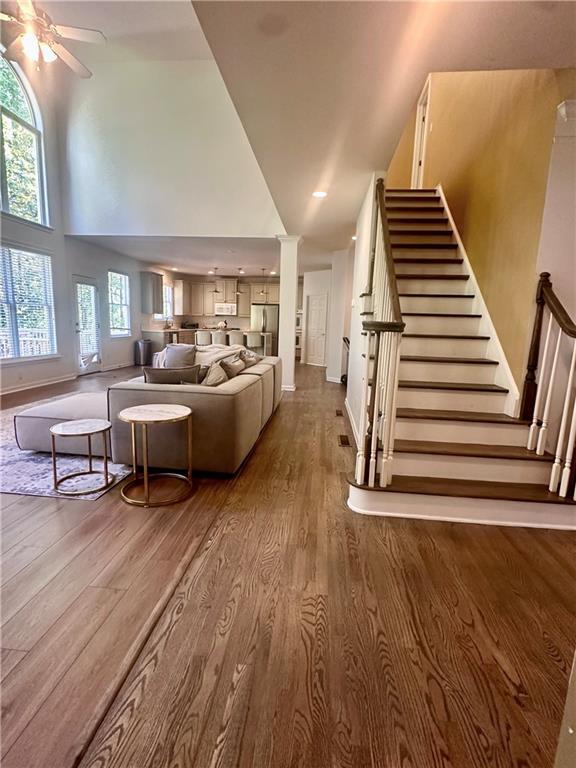 Beautiful home in incredible location. Walk to downtown Alpharetta and Wills Park. Great schools. This open floor plan home is on a full basement. Main floor has two story great room,dining room,and front room. Large island kitchen with double oven,walk in pantry.Bedroom with full bath on main. Large master bedroom upstairs with huge walk in closet,sitting area and luxury bath. Basement has one finished room and lots of storage space. Beautiful easy maintenance flat backyard with waterfall pond and stone patio. Great neighborhood amenities including tennis,pickleball and playground. Pool nearby. Close to 400. No sign GAR form application.