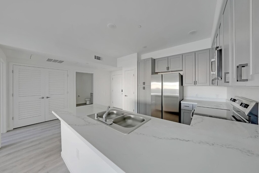 This unit comes equipped with a washer and dryer, stainless steel appliances and vinyl flooring throughout. The French Door refrigerator design give the kitchen an elevated look and provide optimal space. The kitchen features a wraparound countertop with high quality cabinetry that have soft close capability, enhancing users experience through smooth, quiet closing that protect the cabinets as well as its contents. The unit has two large slider doors off the living room and in the bedroom which bring in great natural light and lead into your large private patio. The bedroom's closet is large with built in shelving for peak organization. **Pictures are of similar unit with same layout** Conveniently located behind one of Hanford’s primary shopping centers, Village at Hanford Square offers luxury apartment homes with something for everyone. Our amenity-rich community features a dog area for our furry residents and a BBQ area with a built-in pizza oven—perfect for sunny days with ...