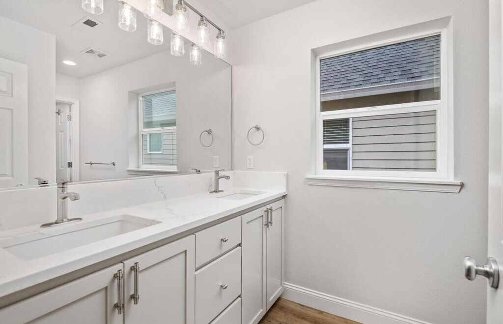 Absolutely beautiful 1511 SqFt, 2-story home with 3 bedrooms and 2.5 baths. Open great room floorplan with high ceilings and large windows that offer lots of natural lighting. Central air conditioning, smart thermostat and stylish and efficient LED lighting. Kitchen is fully loaded with quartz countertops and all stainless steel appliances including refrigerator, gas stove, built-in microwave, dishwasher, disposal and pantry. All bedrooms and laundry room with washer/dryer hook-ups upstairs. Primary suite has dramatic vaulted ceiling and private spa bathroom with dual sink vanity, glass shower and walk-in closet. Fully fenced back yard with custom deck, great for entertaining and BBQ's. HOA maintains front yard! Single car garage. Excellent location in the Arbor Vineyards neighborhood with many nearby walking trails and a community park with a playground. No pets. No Smoking. Drive by and then call to schedule a viewing. Our leasing agent has all paperwork to get you started. A $65 application fee is required at time of application. A security deposit and first month's rent required for move in. Check us out on the web, Information deemed reliable but not guaranteed. ADI Properties Inc Portland Tigard Tualatin Beaverton Aloha Hillsboro Forest Grove.