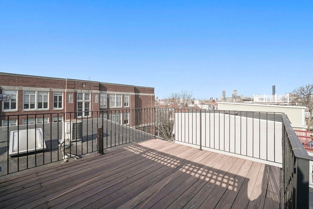 One of the best roof decks in the city with sweeping views of Back Bay to Seaport! Live in this renovated 2 bedroom,1.5 bathroom,penthouse duplex in the heart of South Boston. Open concept living/ kitchen area features walnut cabinets and stunning marble; herringbone backsplash with caesar stone island,stainless steal appliances with gas cooking,recessed lighting throughout and ample natural light. From the kitchen,you can step outside onto a small deck,one of three private outdoor spaces. Upstairs you will find two generous sized bedrooms with large closets,spacious on-suite bath and washer/dryer. Off the master suite you have access to your roof deck with amazing city views. The home also features central air,hardwood floors throughout and large deeded storage in the basement. Ideally located near many great restaurants and shops,this home is near major bus lines,highway and T access,making for an easy commute into or out of the city. Sorry no pets/undergrads. MLS# 73481526