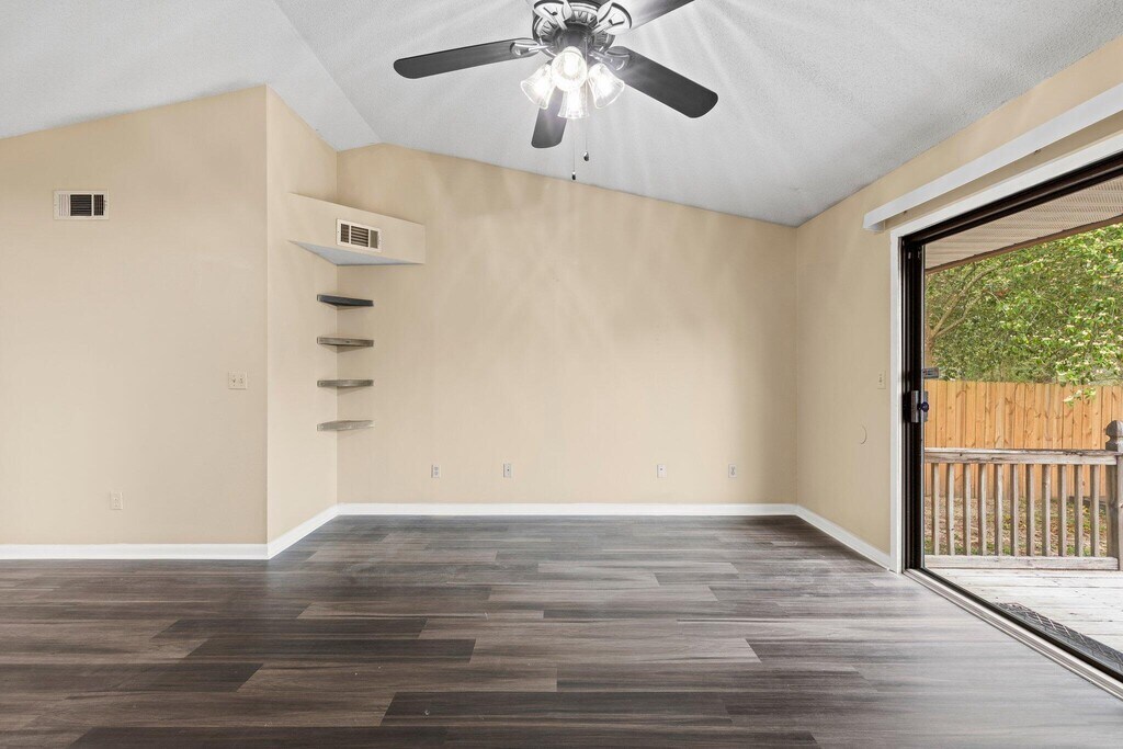 Welcome to this beautifully renovated two-bedroom, one-bath single-family patio home located in the heart of Niceville. Offering the ease of single-story living, this property features a longer driveway with plentiful parking, perfect for guests. Inside, the home showcases luxury vinyl plank flooring, a vaulted ceiling, upgraded lighting, and abundant natural light throughout. The kitchen boasts stainless steel and black appliances, and the dining and living areas are enhanced by two large sliding glass doors that create a seamless indoor/outdoor flow. Thoughtful custom shelving adds style and functionality. Both bedrooms are comfortably sized with carpeted flooring, adding warmth and comfort. Step outside to enjoy a back wood deck overlooking a very large, fully fenced-in backyard
