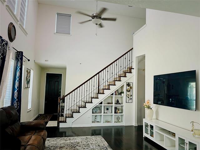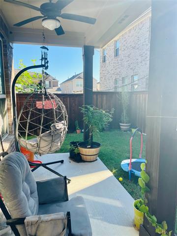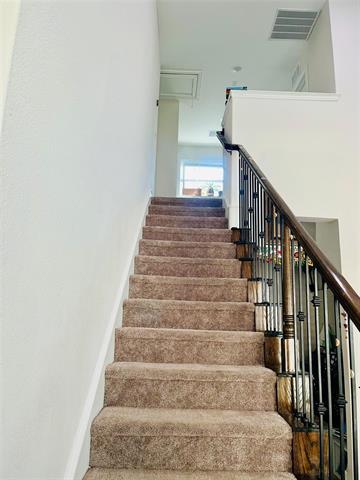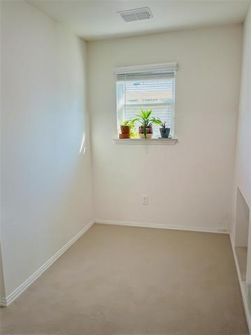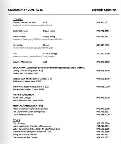 Carrollton-Farmers Branch ISD. This north-facing home was built in 2022 by Pulte Homes. Harrison floor plan. DOWNSTAIRS features the primary bedroom and ensuite with dual sinks, a walk-in shower with tile surround, and a large walk-in closet, and the kitchen, living room and laundry room, mud room, and half bath. This spacious 3-bedroom, 2.5-bathroom home with a 2-car garage is located in the gated Legends Crossings community in Valley Ranch. Step into an inviting open-concept layout with upgraded wood-like tile flooring throughout the first floor. The chef’s kitchen showcases a large island with granite countertops, a built-in microwave, a stainless refrigerator, and direct access to your private oasis in the fully fenced backyard, secluded and perfect for gardening or relaxing under the covered patio. Upstairs, you will find an office or flex room, 2 bedrooms, and a full shared bathroom. It is within walking distance to the pool and amenities center, which includes a large fitness center. Conveniently located near major highways, shopping, dining, and entertainment options. Located just 10 minutes from the DFW Airport & Toyota Music Factory and 20 minutes from downtown Dallas