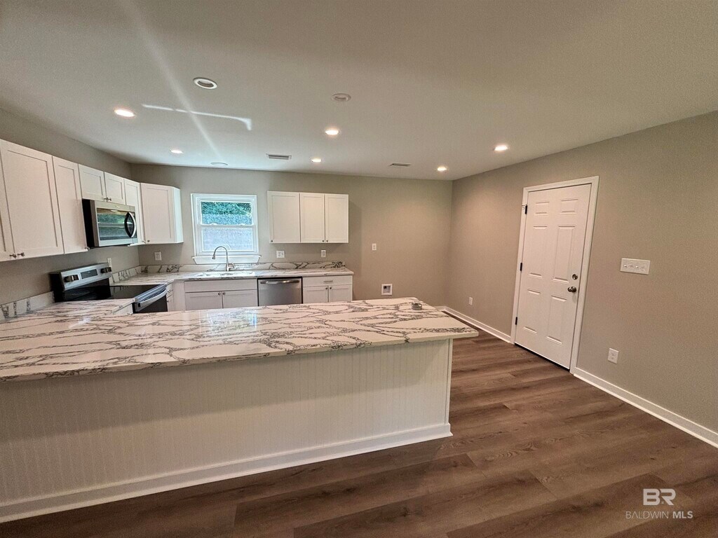 Come and see this charming,like-new home in desirable Spanish Fort! Completely rebuilt from the studs with all NEW Plumbing,HVAC,Electrical wiring and fixtures and brand-new windows. Step through the front door into an open-concept layout featuring new luxury LVP flooring,a kitchen with new cabinets,and stunning Quartz countertops and SS appliances. The home also features a versatile flex room-perfect for storage,an office,or a play room. Out back,enjoy a spacious open backyard that is fully fenced. This home also features an attached carport that is perfect for hosting events or relaxing in the evenings. No Smoking and No Pets!