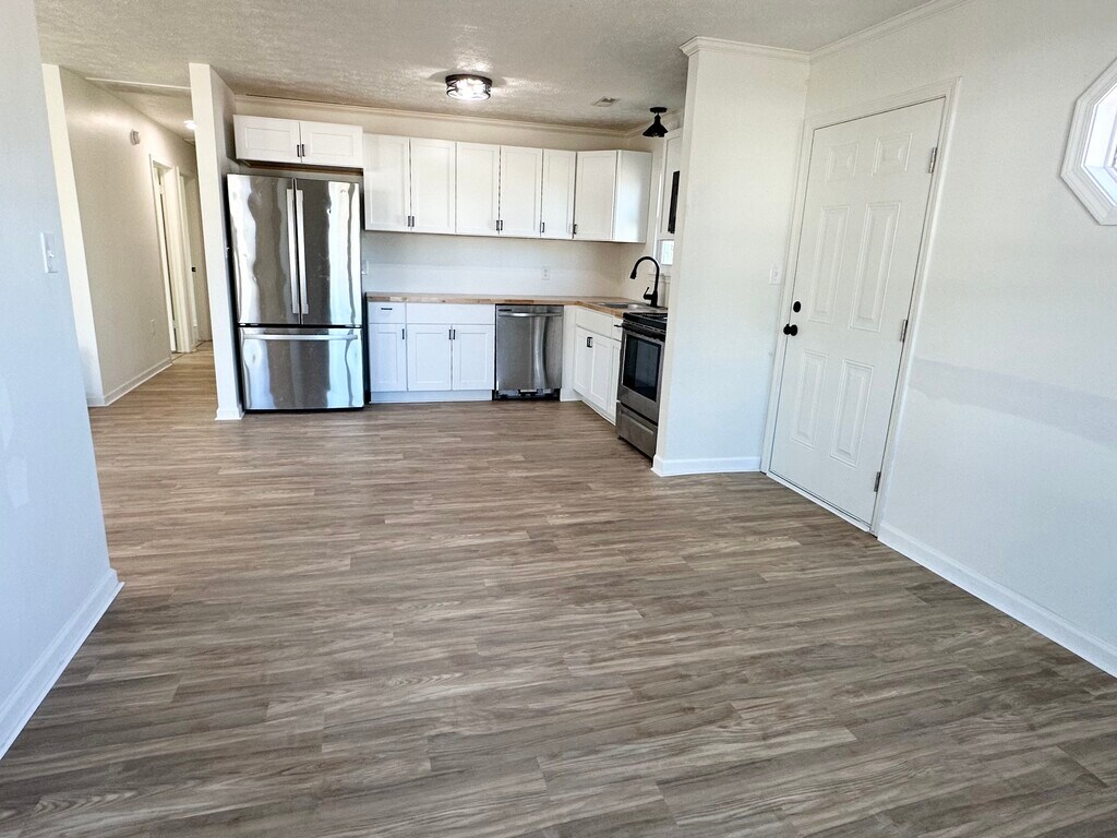 Welcome to this inviting 3-bedroom, 1.5 bath home located in the heart of Poquoson! Nestled in a quiet neighborhood on a low-traffic and family-friendly street, this newly updated home offers comfortable living with a functional open layout perfect for families or professionals. You’ll find bright living spaces with plenty of natural light, a spacious kitchen with ample cabinet storage, and three nicely sized bedrooms. The master suite has front loading washer and dryer, as well as access to a new deck off the back of the home. The full bath has a beautiful tiled bathtub, while the kitchen has new Shaker cabinets and modern butcher block counters, completed with stainless steel appliances. Every room has new floor, new lighting, fresh paint, and new windows. Be the first to enjoy all the modern updates! The yard backs up to grassland and woods. There is also garage space under the home for small vehicles or additional storage. The property offers driveway parking and is located near docks, public boat launch, and a playground. The home is close proximity to Langley Air Force Base, Huntington Beach, and highly rated public schools. Come enjoy the peace and beauty of a coastal town while being close to major employers, shopping, and dining.