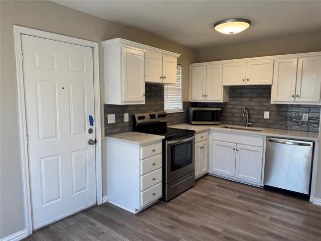 Unit #A- Newly Updated Kitchen & Bathroom. Kitchen has: dishwasher, disposal, range & microwave. Wood laminate floors throughout. Full size washer & dryer hookups. Clean and Ready To Go