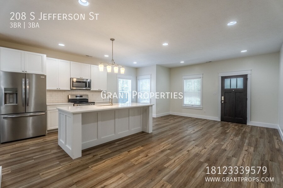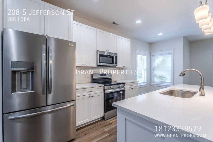 Property Description Rent for 3 bedroom/3 bath townhouse is $2,985/mo. (3 people), $2,700/mo. (2 people), $3,300/mo. (4 people) plus electric, trash removal and water. Building provides two BRAND NEW two story luxury 3 bedroom/3 bathroom apartments under construction. (Available August 2026) Located just two blocks from the Education building on the east side of campus. High-end finishes include vinyl plank flooring throughout, quartz counter tops and stainless-steel appliances in kitchen (refrigerator, dishwasher, stove, microwave and sink) and in-unit washer/dryer. (Similar finishes to be used are in photos) Rent includes lawncare and 24-hour emergency maintenance hotline. Off-street parking available. Note: Video attached is of identical building except that 206 S Jefferson includes side exterior doors & porches. Built In Microwave Cats Allowed Electric Range No Dogs Allowed Patio/Deck/Porch Tenant Pays Electricity Tenant Pays Internet Tenant Pays Water/Trash Pick Up Unfurnished W/D In Unit