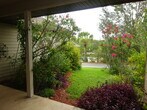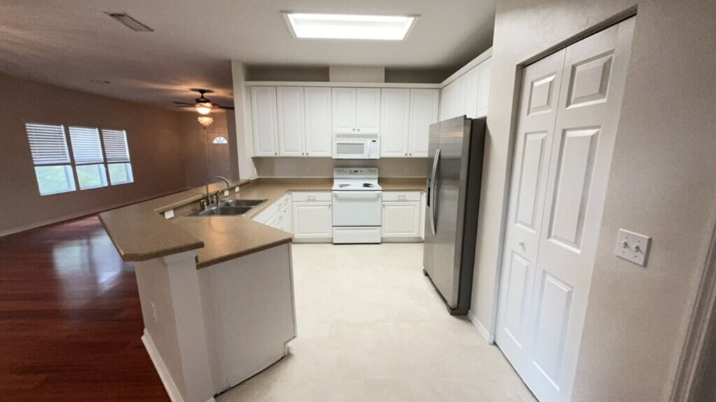 This 3-bedroom 2-bathroom home has beautiful wood floors throughout open living room and dining area. New tile floors in kitchen. Carpet in the bedrooms. Ceiling fans and upgraded lighting throughout. Spacious master bedroom with remodeled master bathroom. Laundry room with washer and dryer. 2 car garage and back patio that overlooks community pool. Beautiful landscape around the home. Pet friendly for small dogs only. No fenced areas around property.