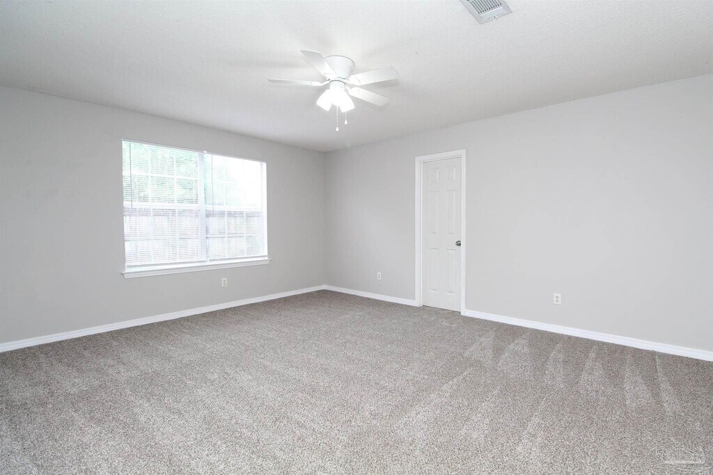 3-bedroom,2-bath home with a 2-car garage located in Springdale Forest off Michigan Ave & Mobile Hwy in the Bellview area. Convenient location near I-110,shopping,dining,hospitals,and about 15 minutes to NAS Pensacola. The home features an open layout with luxury vinyl plank flooring in the main living areas. The kitchen includes a large island and overlooks the living and dining spaces. Split bedroom floor plan with the primary bedroom separate from the additional bedrooms. The primary suite offers a double vanity,a walk-in closet,and a garden tub. Two additional bedrooms and a full bathroom are located on the opposite side of the home. Gas heat and gas water heater. Fully fenced backyard with an open patio. Pets are considered with owner approval and a $250 non-refundable pet fee per pet; aggressive breed dogs will not be considered. Residents are required to have renter liability insurance,which can be added for $11.95/month,or you can opt into the Resident Benefits Package (RBP) for $45/month,which includes renter liability insurance,HVAC air filter delivery,and on-demand pest control. More details are available in the application. Coming available 4/20!