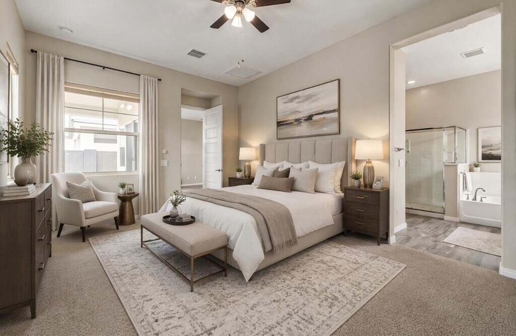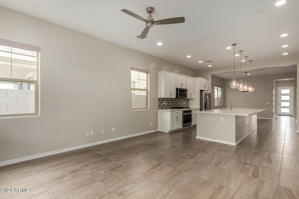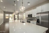 Like-new single-story home in Avier East,ideally situated on a premium greenbelt lot. This beautifully maintained residence offers 3 bedrooms,a den/bonus room,and 2.5 baths across 1,979 square feet of thoughtfully designed living space. The gourmet kitchen showcases white cabinetry with crown molding,an oversized quartz island with seating for six,designer tile backsplash,gas cooktop with hood,and stainless-steel appliances,including the refrigerator. A new washer and dryer are also included. Upgraded lighting enhances the home throughout. The spacious great room features multi-sliding doors that open to an extended patio,creating seamless indoor-outdoor living. The backyard is perfect for entertaining,complete with a built-in BBQ,paved seating area,and low-maintenance artificial turf. The primary suite offers a private retreat with dual vanities,a separate shower,a spa-like soaking tub,and a generous walk-in closet. Additional highlights include low-maintenance front and backyard landscaping,fresh interior paint,custom blinds throughout,new laminate wood flooring in all bedrooms,and upgraded tile flooring in main living areas. Conveniently located near the Loop 202 with easy access to shopping,dining,and entertainment in Chandler.