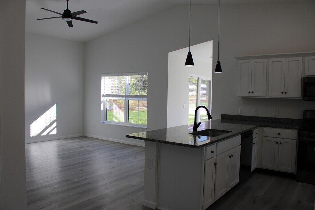 Discover comfort and style in this brand-new 3-bedroom, 2-bathroom home offering 1,633 sq. ft. of living space. Designed with efficiency and convenience in mind, each Energy Star Certified home helps keep heating and cooling costs low while maintaining year-round comfort. Step inside to an open floor plan that blends functionality with modern design. The kitchen serves as the heart of the home, featuring ample cabinetry, granite countertops, a center island, and plenty of space for cooking and entertaining. It flows seamlessly into the dining area and bright living room, where large windows and a sliding glass door fill the space with natural light and open to a spacious concrete patio—perfect for relaxing or gathering with friends. The primary suite offers a peaceful retreat with a walk-in closet and an en-suite bath complete with a double vanity. Additional highlights include first-floor laundry, an attached 2-car garage, and lofted ceilings in the kitchen and dining areas that enhance the open, airy feel. Enjoy the benefits of modern living in a convenient location—a perfect place to call home Discover comfort and style in this brand-new 3-bedroom, 2-bathroom home offering 1,633 sq. ft. of living space. Designed with efficiency and convenience in mind, each Energy Star Certified home helps keep heating and cooling costs low while maintaining year-round comfort. Step inside to an open floor plan that blends functionality with modern design. The kitchen serves as the heart of the home, featuring ample cabinetry, granite countertops, a center island, and plenty of space for cooking and entertaining. It flows seamlessly into the dining area and bright living room, where large windows and a sliding glass door fill the space with natural light and open to a spacious concrete patio—perfect for relaxing or gathering with friends. The primary suite offers a peaceful retreat with a walk-in closet and an en-suite bath complete with a double vanity. Additional highlights include first-floor laundry, an attached 2-car garage, and lofted ceilings in the kitchen and dining areas that enhance the open, airy feel. Enjoy the benefits of modern living in a convenient location—a perfect place to call home