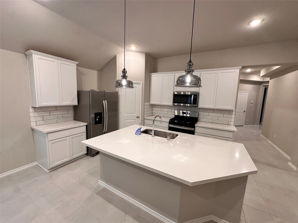This charming one-story home boasts an open-concept design that you will adore. Walking into the home,you will enjoy how the foyer opens into a long hallway that leads into the heart of the home. The family room and kitchen are the centers of attention. They feature 42-inch tall cabinets,gorgeous Omega stone countertops,a beautiful tile backsplash,and ample counter space with a considerably sized island,perfect for the chef of the house. Enjoy family meals in the formal dining room or outside on the covered patio. The primary suite is secluded,in the rear of the home,complete with a tub,shower,and double sinks. Visit this beautiful home today! MLS# 8502987