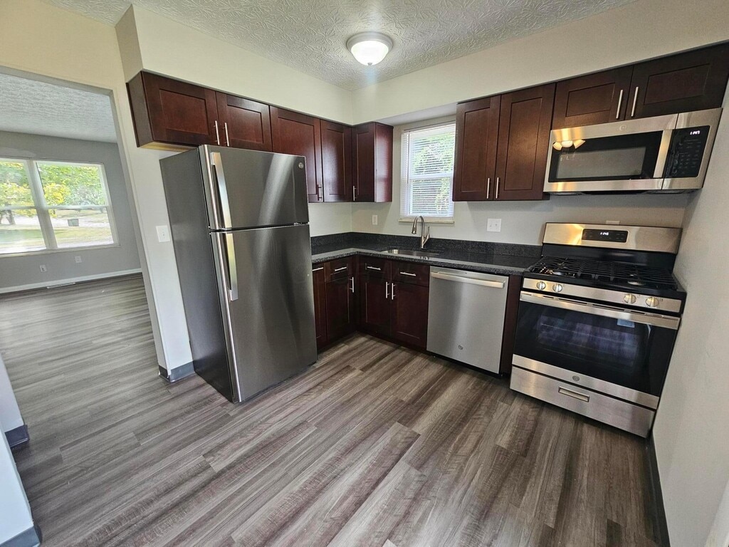 Beautifully updated townhouse in desirable 43229! A few blocks south of 161,this unit is minutes from shopping,restaurants,schools,and highways. The kitchen boasts brand new granite countertops and cabinets. Stainless steel appliances: gas range,fridge,dishwasher,and microwave. Two bedrooms and one full bath that has a new tub & surround. New trendy vinyl plank flooring on first floor and in bathroom. New carpet upstairs. Basement is unfinished with laundry hook-ups and plenty of storage. Private driveway. Patios off both exterior doors. Unit is NON-smoking and does not allow pets. No central A/C. Tenant is responsible for gas & electric. Water is $30/month per occupant. Owner handles yard care. Qualifications: no recent evictions and no rental/utility collections. Solid landlord reference. Income must be 3x monthly rent ($3750). Credit score minimum of 650.
