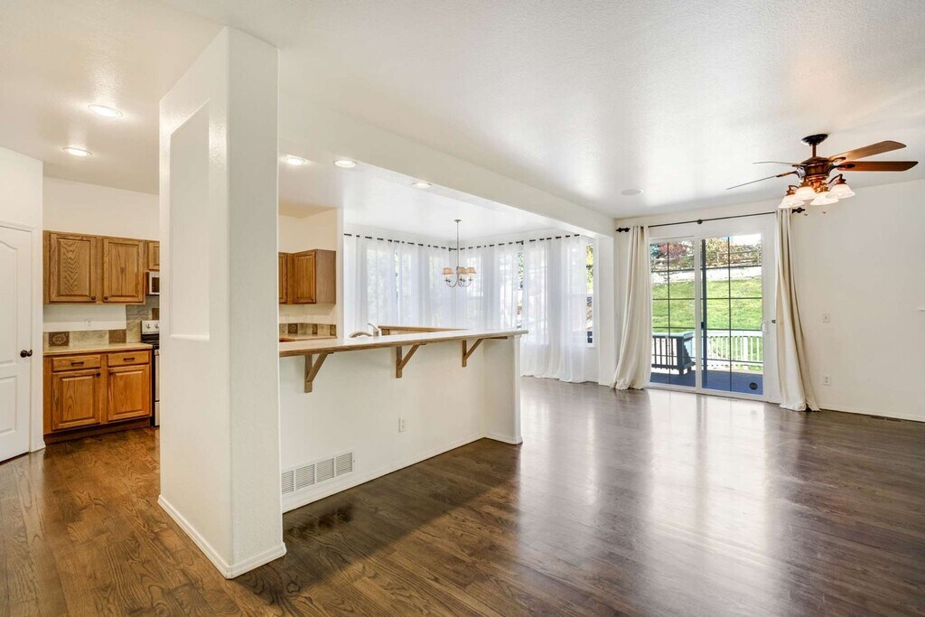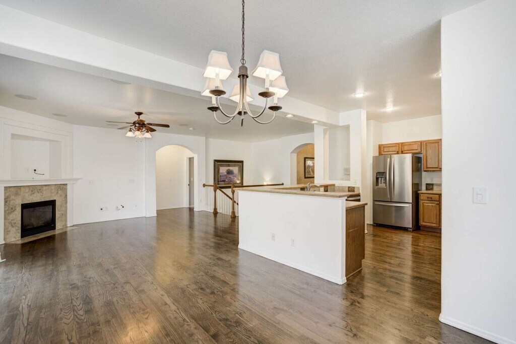 6,9 or 12 month lease available! This property is in a fabulous location near Interquest and Voyager. Easy access to Powers or I-25 make commuting to just about anywhere in the area much easier. Ranch style home with main level primary suite, large modern kitchen, wood floors, and a large family room with gas fireplace. You will love the open and bright floor plan. There are 2 bedrooms on the main level and 3 more in the fully finished basement along with a second family room and a full bathroom. Air conditioning, ceiling fans, walk in closets, plenty of storage, views, and walking distance to hiking and biking trails. This home offers a great Colorado Lifestyle experience. The back yard is fenced and landscaped and ready for outdoor entertaining or family living. You will love this neighborhood and the proximity to all the newest restaurants, shops, entertainment, schools, parks, and major arterial routes. This beautiful home with a great floorpan in a wonderful location makes it a great choice for your rental home. For more information, to apply, or to schedule a showing visit Virtual Tour: