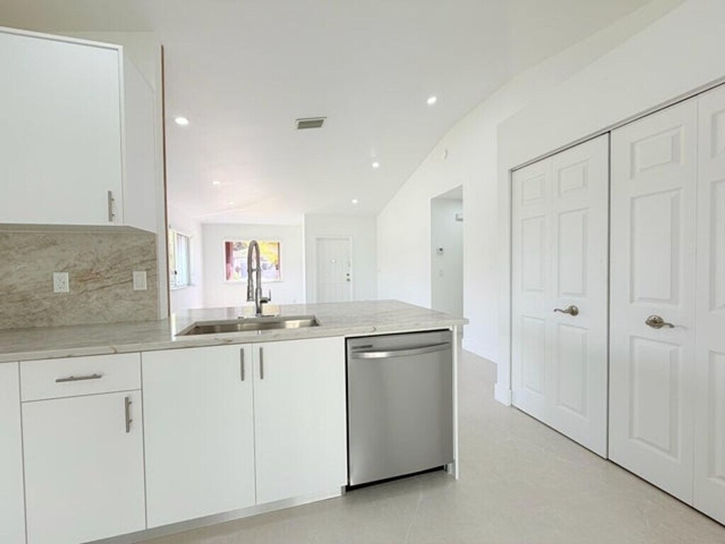 Courtesy of Compass Florida, LLC Posted by Andrew Coleman with EXP Realty . Fully renovated corner villa for rent in gated Malibu Bay, offering comfort, style, and resort amenities. Be the first to live in this nearly new one-story home featuring brand-new roof, fresh exterior paint, new HVAC, and accordion hurricane shutters. Inside is a redesigned kitchen with soft-close cabinets, marble countertops, stainless steel appliances, recessed lighting, new flooring, and a spacious primary suite with vaulted ceiling. Bathrooms are updated with modern stand-up showers, plus in-unit washer and dryer. A covered, screened patio overlooks a grassy common area, and two assigned parking spaces add convenience. The community offers pool, hot tub, fitness center and tennis, with association including fiber-optic internet, cable, and lawn care.