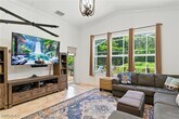 One of the best lots in Saturnia Lakes with amazing privacy and incredible sunset views. Located at the end of the cul-de-sac bordering Passive Park,the home has an oversized yard and pool cage complete with heated pool with sun shelf,outdoor shower and unobstructed views West for Southwest Florida sunsets. IMPACT GLASS windows,slider and pool door. This unique SINGLE STORY floor plan includes 4 bedrooms,two full bathrooms with endless modern upgrades,two separate living spaces,and custom lighting throughout. The garage includes an air-conditioned flex space for office or protected storage. Recent upgrades include new pool pump 2024,new water heater 2022,new microwave,dishwasher and fridge compressor 2023. The gated community is conveniently located in North Naples and features 2 large resort style community pools,clay Har-tru lighted tennis courts,basketball court,putting green,exercise facilities,billiards room,playground and entertaining spaces. The home is in close proximity to some of the highest A-rated Collier County Schools,numerous restaurants,shopping,Sprouts and more. Less than 10 miles from the beach and central to endless Golf-courses this home is the perfect Naples location.
