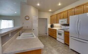 Desirable Quail Crossing one-level home located in a nice cul-de-sac. Three bedrooms, two baths and large vaulted ceiling great room with gas fireplace. The spacious kitchen has a pantry, alder cabinets and dining area off to the side. The master bedroom has a walk in closet, double vanity and walk-in shower, with a door that leads out to the backyard. Two, double car attached garages with heater.